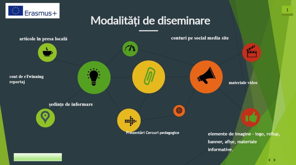 - Implicarea directă a 28 de cadre didactice și a 94 de elevi din învățământul gimnazial, în activități de cooperare prin transfer de bune practici, prin abordarea unor noi tehnici de învățare prin colaborare interinstituțională Erasmus, până în 2028;